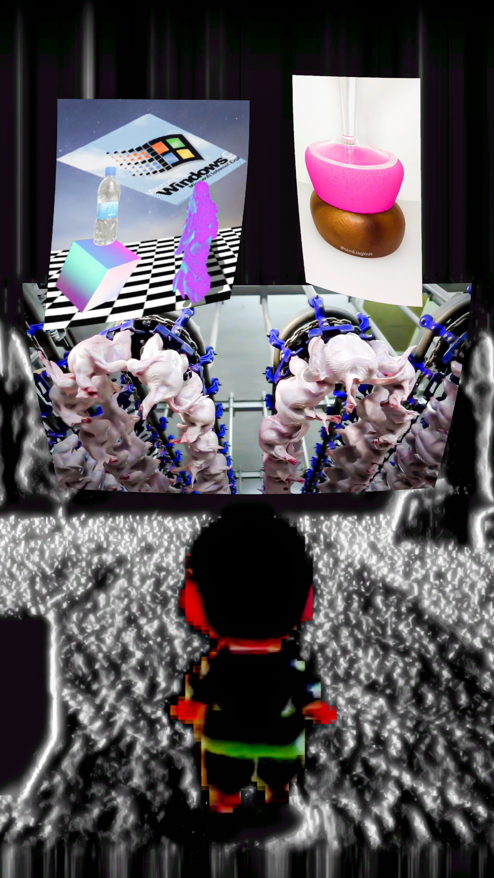 "dansLesSouts" — in collaboration with sound artist Samy Bérard, encourages escape from a capitalist world through 3D images and a spatialization system, giving it potential for a compelling live sensory experience.