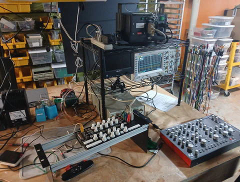 Last week we reached a couple of big Chromagnon milestones: The RevG Core hardware has been fully reviewed; slow scan raster generation for ILDA laser and low-bandwidth displays has been implemented; and we have a complete synthesizer on the workbench -- finally! Unlike software based visual generators, or simpler analog circuits (like our modules), Chromagnon is a design that has been very difficult to show as a work in progress until all of the pieces, both hardware and firmware, were in play. I am very glad to be at this point, because you'll no longer have to take my word for it when it comes to what, how, and why Chromagnon does what it does.