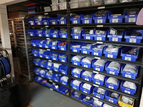 Here are some photos of our inventory workspaces. We have accounted for hundreds of unique bin locations and over two million parts over the past few weeks. This primes our resource planning software to identify the quickest path solutions to keeping our manufacturing lean and effective with our small team.