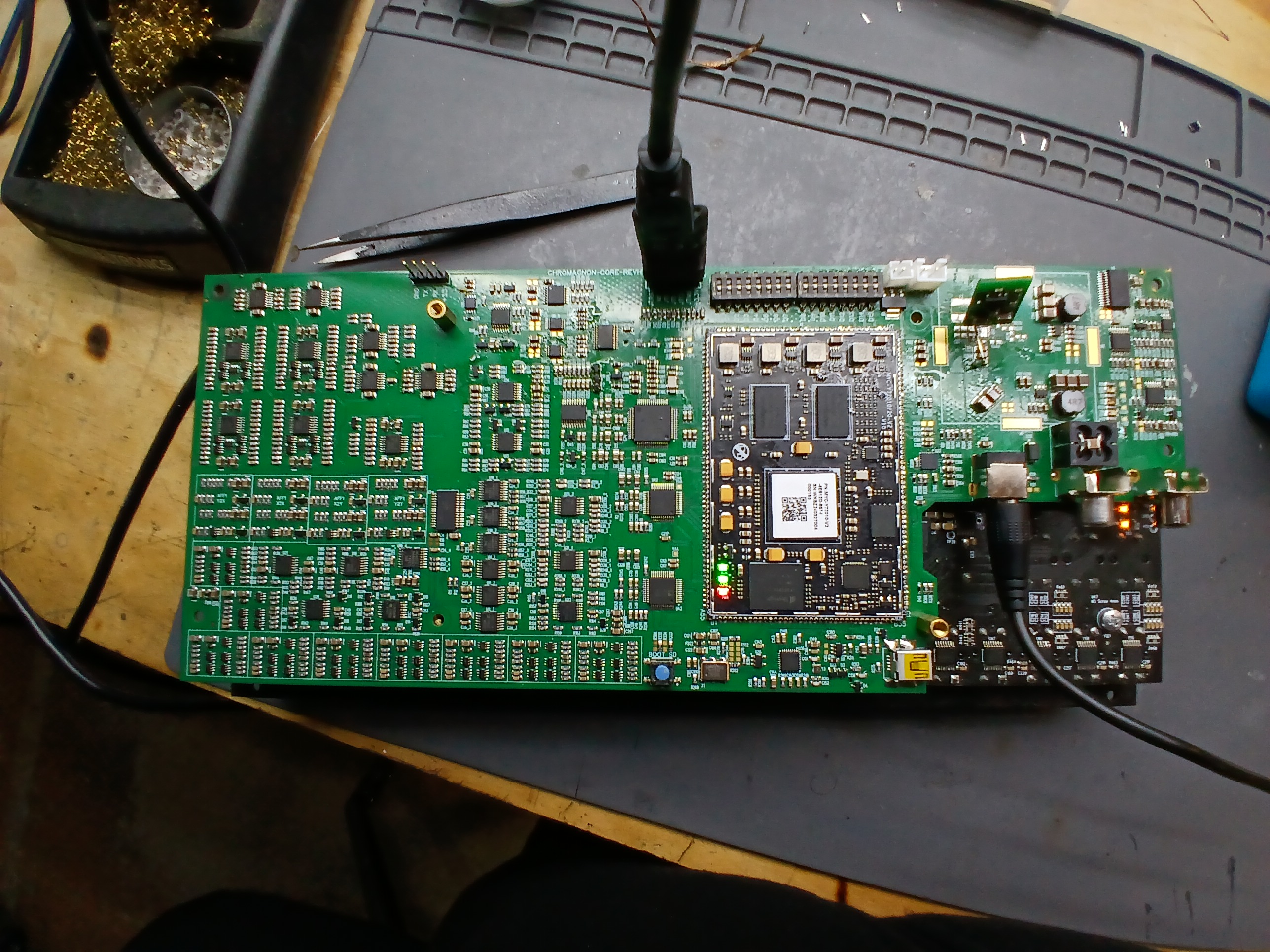 The requested Chromagnon recap: 2024 started off strong, with the launch of this production blog, and a new redesign of the Chromagnon Core assembly: RevF. This assembly was designed to put all the remaining assembly work onto a single board, so that we could finally start shipping the project. Our plans moved strongly thru the RevF review, but there were still several functional changes that needed to be made. Then we got hit with the unexpected: sales slowed drastically this year, forcing us to downsize.